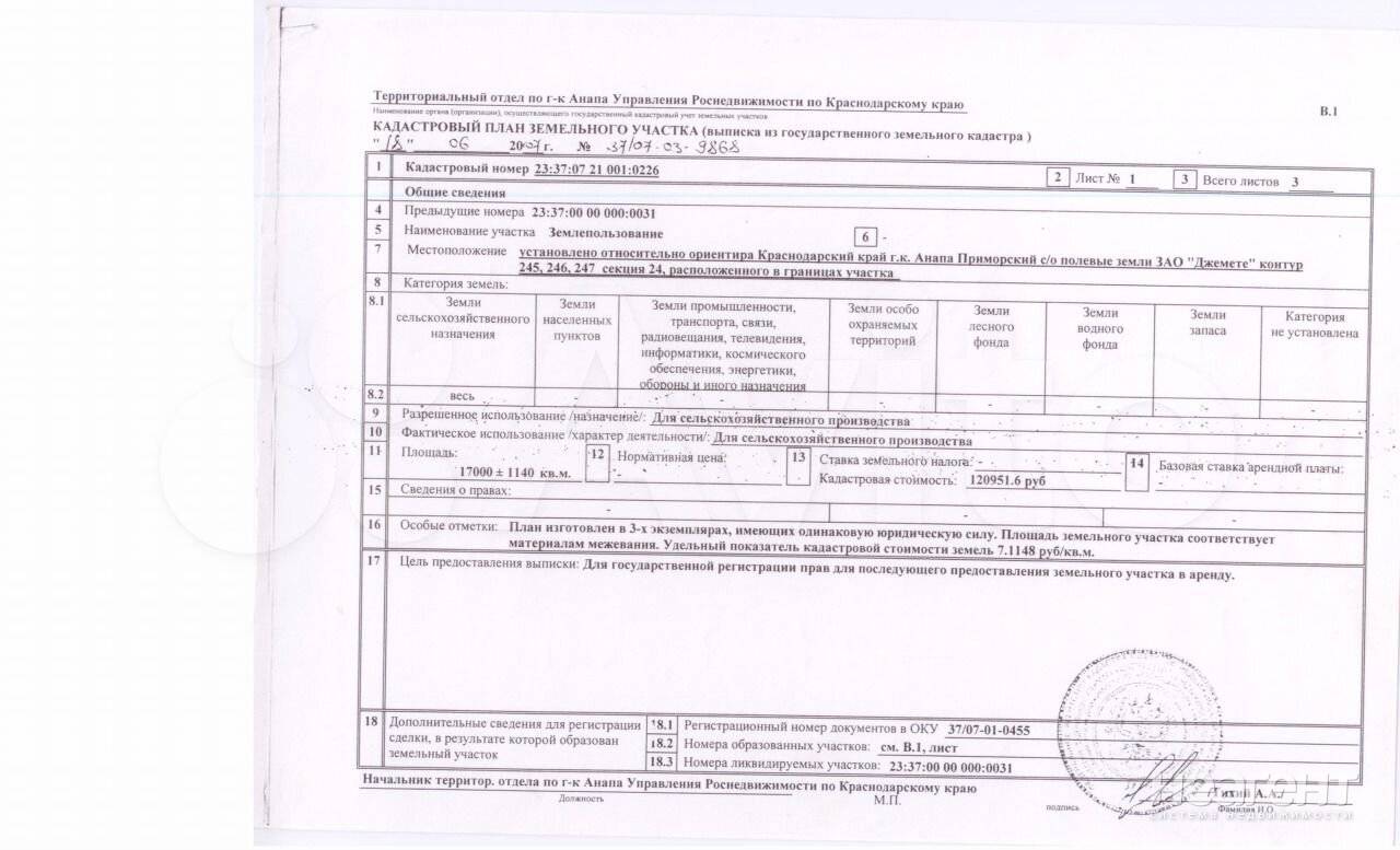 Продаю участок площадью 170 сот. Продам участок 1,7 га, г Анапа. Приморский с/о, полевые земли ЗАО «Джемете». Земля сельхоз назначения, собственник. Контур 245,246,247, секция 24. Кадастр 23:37:07 21 001:0226.