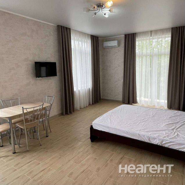 Сдаю в аренду 1-комнатную квартиру площадью 35 кв. м на 2 этаже 2 этажного монолитно-кирпичного дома. Сдается комната-студия. До моря 10-15 мин пешком через Детский парк. Магнит, пятерочка и другие магазины в шаговой доступности. В студии кровать, кухонный гарнитур, стол, холодильник, индукционная варочная панель, стиральная машина, микроволновка, гигиенический душ. договор заключаем. Для арендаторов без животных.