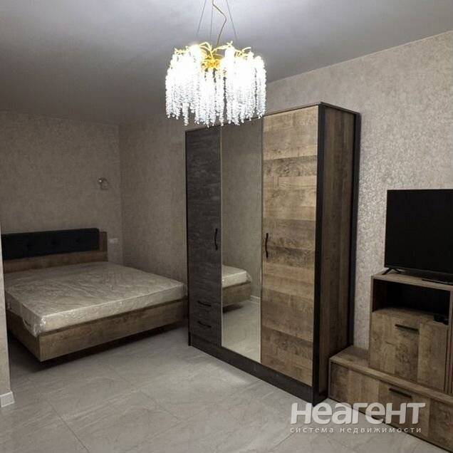 Студию. В жилом комплексе. Есть детские площадки. Спортивные площадки с тренажёрами. Рядом находятся магазины, Магнит, Пятёрочка. Вся мебель остаётся. Хороший развитой район. Есть торг ...
