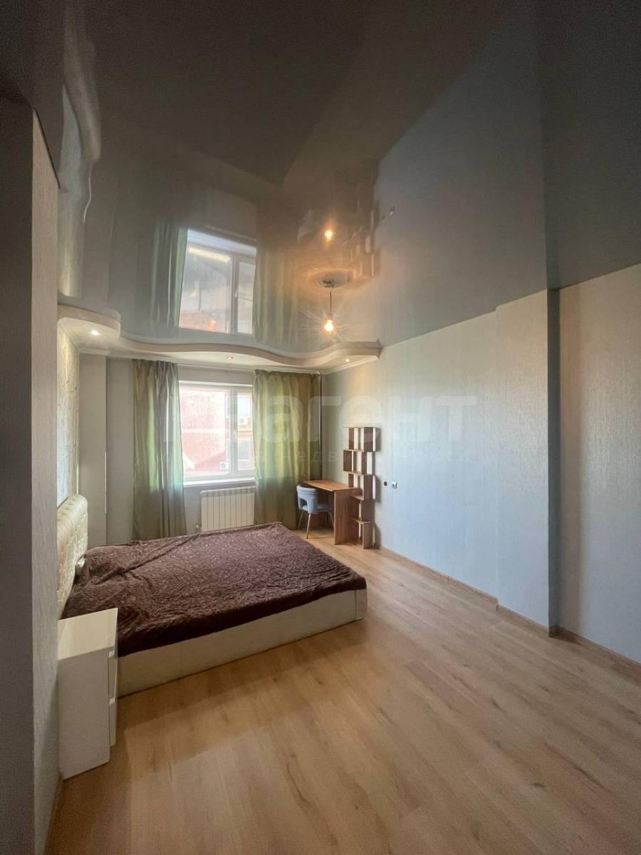 потолки натяжные, обои в комнатах, пол ламинат, кафель в с/у. Окна пластик от застройщика.