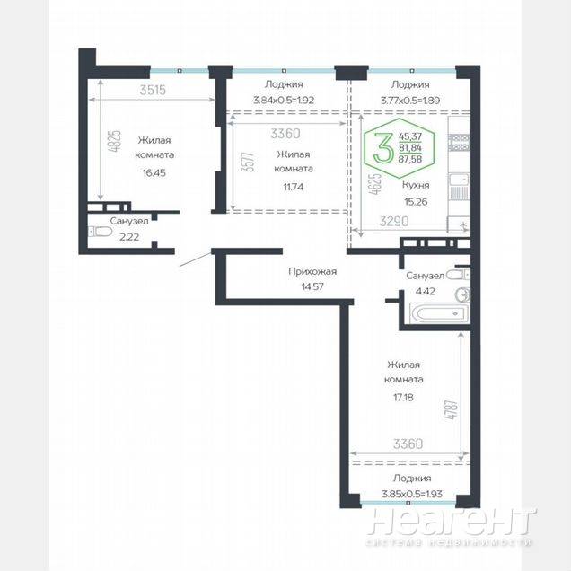 используя код Получите свой код для категории «Продажа 3-х комнатных квартир»