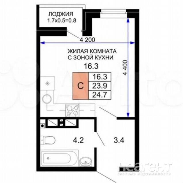 Квартира на 7 этаже. Просторная комната с большими окнами, выходящими во двор. в студии остается вся мебель и бытовая техника. Имеется незастеклённый балкон. На территории комплекса работает ...