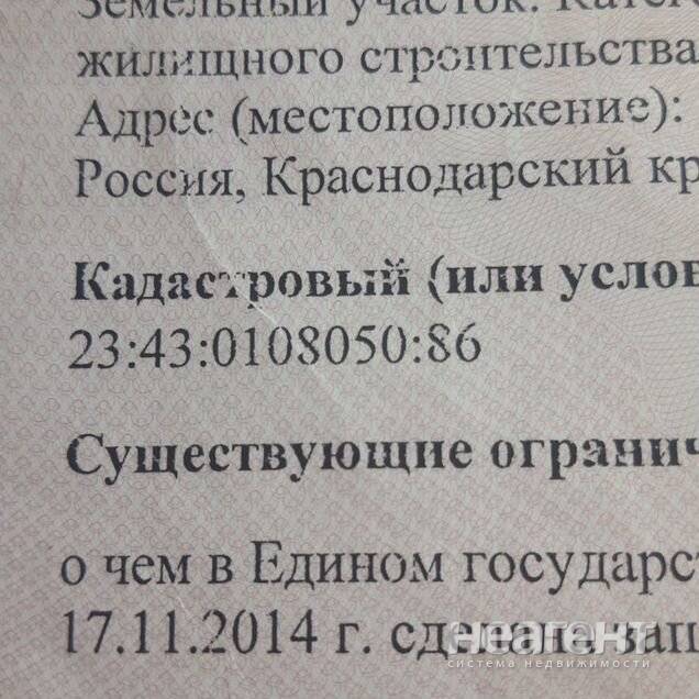 Продаю участок площадью 11 сот. Собственник. 1-я линия. Фасад на Ейское шоссе - 65 метров, ширина 18 метров. Почтовый адрес 9-я Тихая, д. 141. Кадастровый номер участка: 23:43:0108054:1176 ...