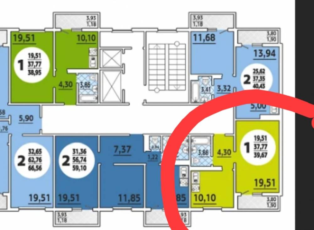 На фото план квартиры относительно лифта