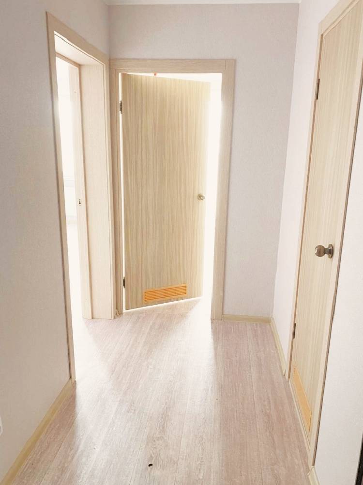 C ремонтом от застройщика. Линолеум, обои, натяжные потолки. Окна металлопласт. Один балкон, застеклен застройщиком. Санузел разделён, пол в санузле - керамогранит. На кухне умывальник. Сплит-система, мебель частично.