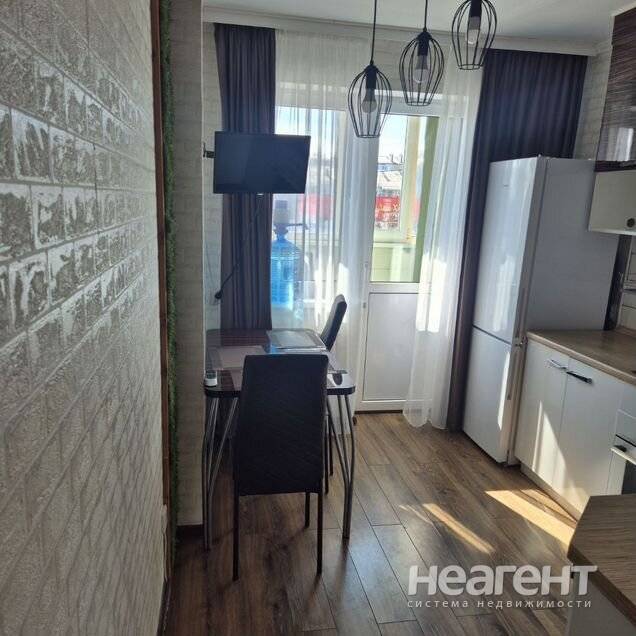 Квартира с косметическим ремонтом. Просторная кухня, оборудована современной техникой, включая холодильник. Из окон открывается вид на улицу, что обеспечивает хорошее естественное освещение ...