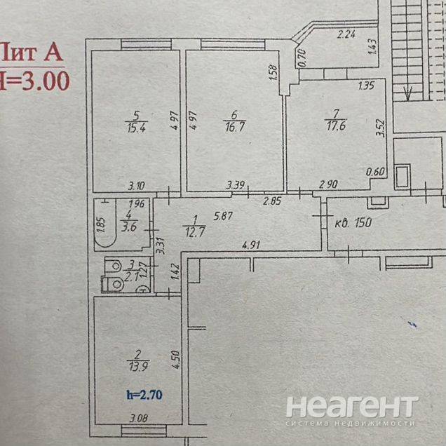 Изолированные комнаты (19,2; 15,0 и 13,4 метра кв.). Кухня 14,4 кв. метра; два сан. узла.