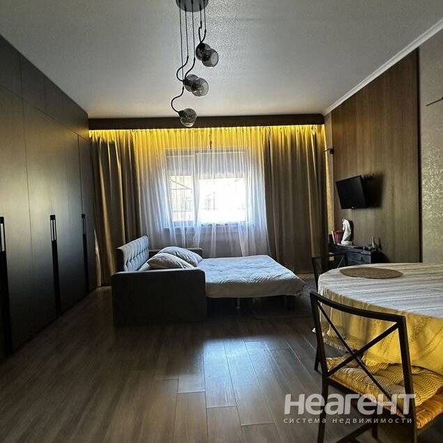 Студия 21,9 кв по документам, после ремонта (присоединение лоджии) 25 кв. ремонт свежий, квартира сухая, зимой очень тепло. Из мебели прихожая, кухонный гарнитур, мягкая мебель. Есть места ...
