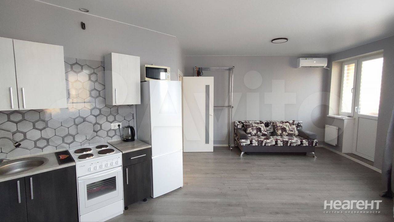 Продаю квартиру площадью 28,4 кв. м на 7 этаже 9 этажного монолитно-кирпичного дома. Квартира на 7 этаже. Просторная комната с большими окнами, выходящими во двор. в студии остается вся мебель и бытовая техника. Имеется незастеклённый балкон. На территории комплекса работает детский сад, на стадии строительства школа и еще два детских сада, имеются спортивные и детские площадки, магазины, кафе, прогулочные зоны. Остановка общественного транспорта возле ЖК, откуда едет несколько автобусов.