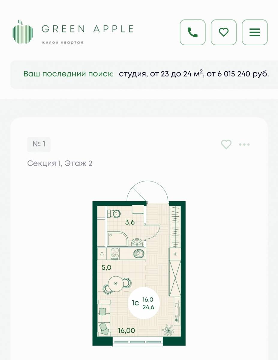 Продам студию площадью 23,1 кв. м на 3 этаже дома. Срочная продажа на 600 тысяч дешевле студия в Жилой комплекс на берегу реки Кубань, в 5 минут от центра г. Краснодар ЖК «Green Apple». рядом школы, садики, магазины, торговый центр. Срок сдачи: 2027. Класс жилья: Комфорт. Тип жилья: Квартиры. Отделка: Без отделки. Количество корпусов: 1. Контактное лицо: Ирина
