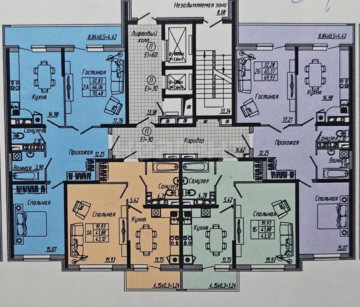 На этаже 4 квартиры.