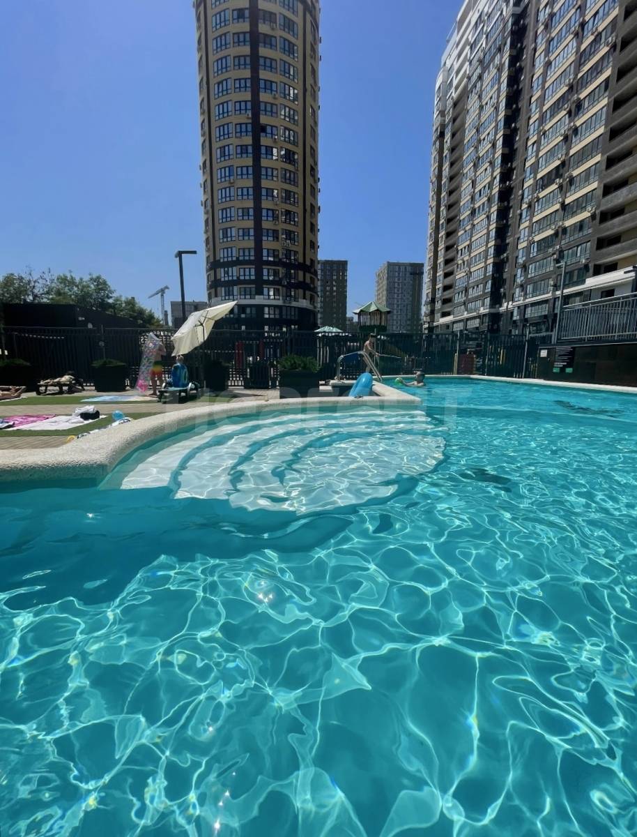 Во дворе: подогреваемый открытый летний бассейн со спасателем; семейный амфитеатр; барбекью зона и беседки, детская и спортивная площадки; магазины, салон, стоматология на первых этажах ЖК в шаговой доступности: