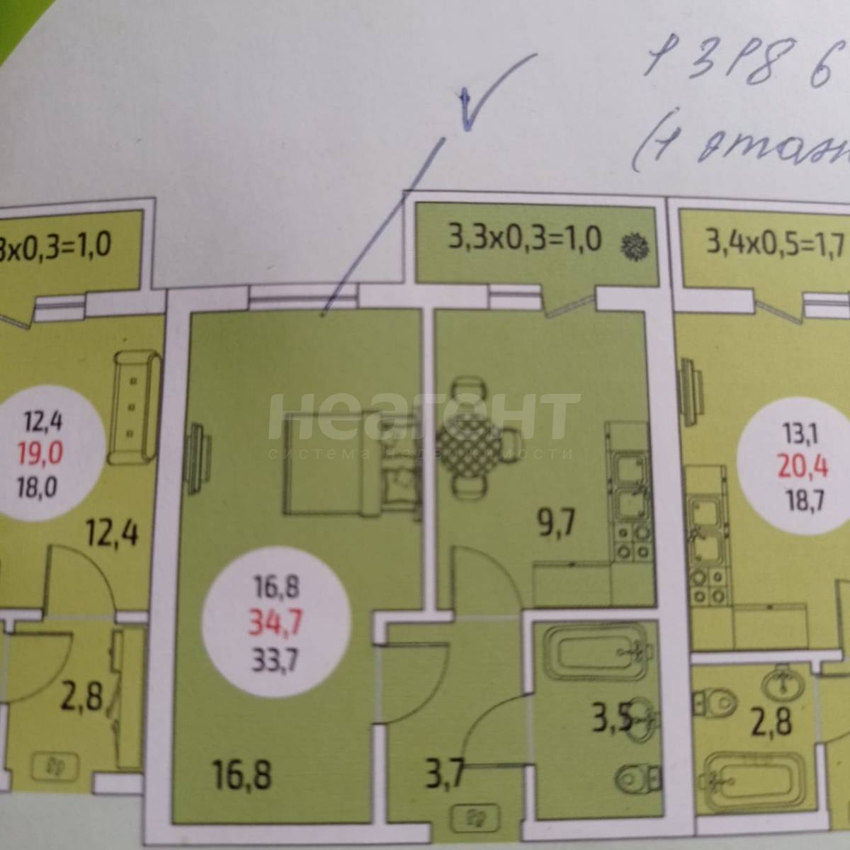 Площадь: 33,6 м, удобная планировка.