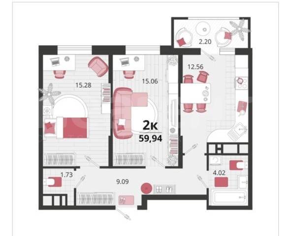 Квартира площадью 59,67 кв. м на 4-м этаже современного 9-этажного монолитного дома, построенного в 2022 году. Высота потолков 2,7 метра. Просторная кухня 14,44 кв. м и жилая площадь 28 ...