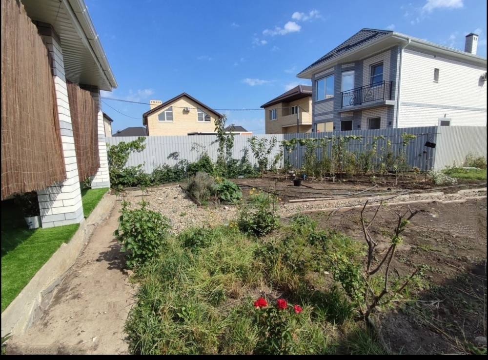 Дом 140 м КВ. 2 этажа, балкон, выход на веранду из кухни. Веранда на восточной стороне, не жарко, окружена разными вкусными сортами винограда. Септик ещё ни разу не наполнялся. Скважина 50 м со вкусной водой. Первый этаж - кухня, душевая и коридор теплый пол, керамогранит. Электр котел. Газ подведён к границе участка. На втором этаже везде светлый ламинат. Везде натяжные потолки, люстры с регулируемым цветом и интенсивностью освещения с помощью пультов. Электрика полностью сделана. Кондиционеры. Большой полисадник с плодовыми деревьями, цветами и виноградом.