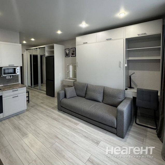 Продаю 1-комнатную квартиру площадью 25 кв. м на 9 этаже 18 этажного дома. Собственник. Продаётся видовая студия 28.5 м на девятом этаже в самом лучшем месте западного обхода ЖК Достояние. Дом находится в центре ЖК. Вид на школу и садик. Рядом с домом имеется абсолютно вся инфраструктура. Два детских сада, школа, супермаркет Пятёрочка. Озон. Валберис, кафе и т д. ТЦ Красная площадь в 7 минутах езды. в квартире остаётся всё полностью, как на фото. Главное элемент мебели шкаф-кровать-диван-письменный стол. Очень удобное и практичное решение для студии. На балконе раскладывающее кресло. Есть абсолютно всё для комфортного проживания или сдачи в аренду.