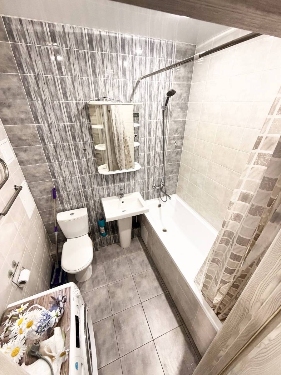 Общая площадь квартиры 47 квадратных метров. В квартире вся необходимая мебель и техника (электроплита, микроволновая печь, холодильник, кондиционер, стиральная машина).