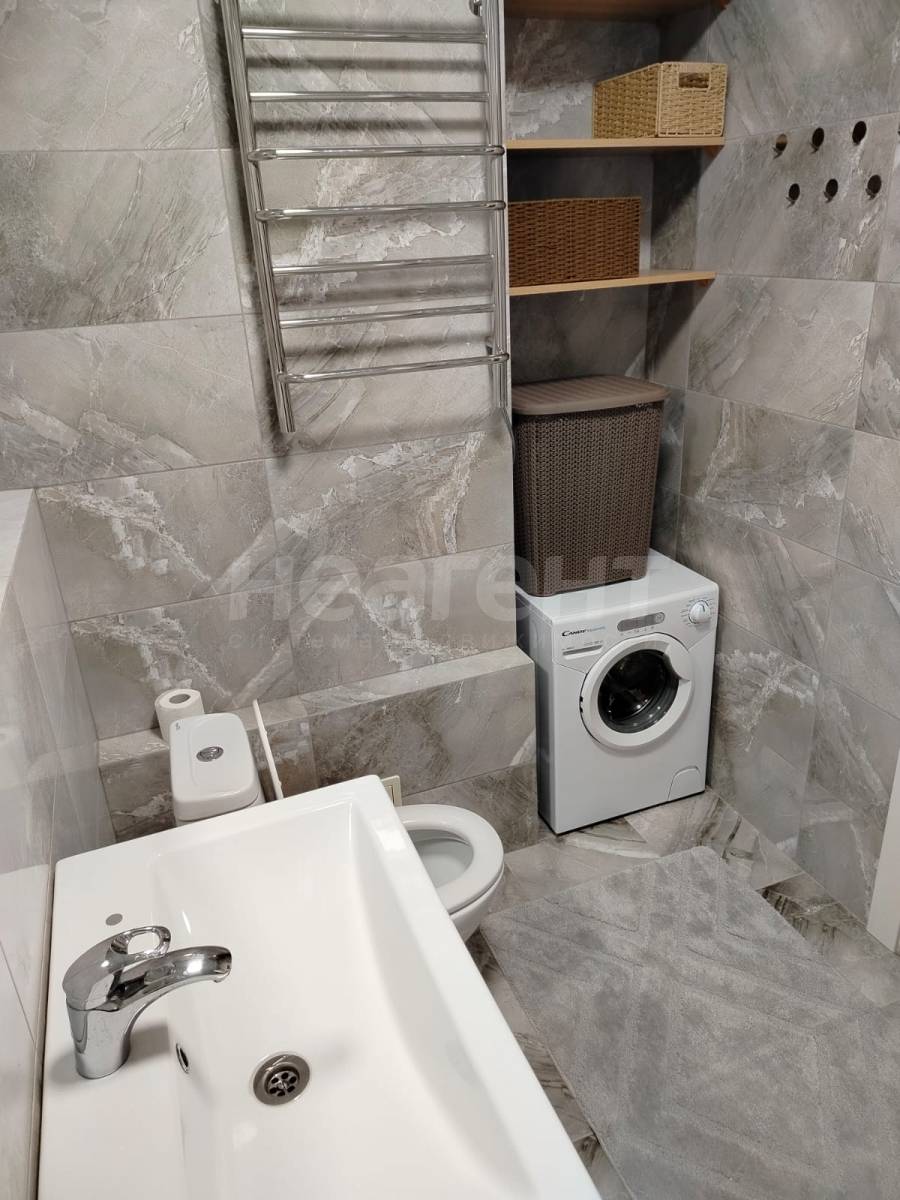 Хорошая звукоизоляция, удобная ванная и стильная сантехника, мебель, электрополотенцесушитель.