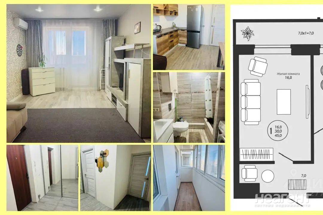 Сдаю в аренду 1-комнатную квартиру площадью 38,6 кв. м на 12 этаже 19 этажного кирпичного дома, построенного в 2019 году. Квартира имеет просторную кухню площадью 10,6 кв. м и жилую площадь 17 кв. м. Высота потолков составляет 2.7 метра, что создаёт ощущение простора. В квартире выполнен косметический ремонт, установлена необходимая мебель как в комнате, так и на кухне. Для вашего комфорта есть кондиционер и холодильник. Санузел совмещённый, оборудован душевой кабиной. Есть лоджия, окна выходят на улицу, что обеспечивает хорошее естественное освещение. Дом оснащён пассажирским и грузовым лифтами, поэтому можно без проблем подняться на нужный этаж. На территории имеется наземная парковка. Дом находится в отличном состоянии, так как построен недавно. В шаговой доступности от дома расположены школы и детские сады, что удобно для семей с детьми. Рядом также находятся магазины, где можно купить всё необходимое для жизни. Отличная транспортная доступность позволяет быстро добраться до ближайших остановок общественного транспорта. Аренда от собственника. Предоплата за первый месяц и залог обязательны. Квартира идеально подойдёт для одного человека или пары. Комиссия отсутствует. Залог 22000 руб. Можно с детьми.