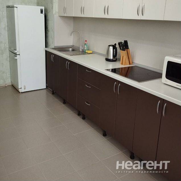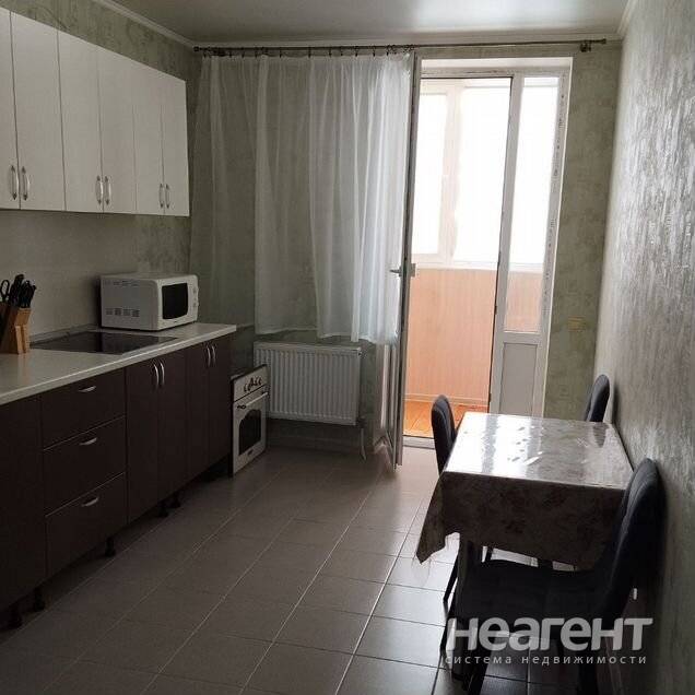 Квартира в ЖК «Жемчужина», 32 кв. м с новым ремонтом. 5 этаж, 10 мин. до трамвая пешком. Кухня-гостиная: Современный кухонный гарнитур, обеденный стол, плита, холодильник, телевизор, микроволновка ...