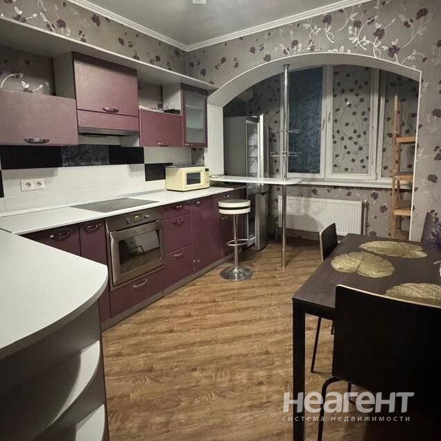 Квартира в ЖК «Жемчужина», 32 кв. м с новым ремонтом. 5 этаж, 10 мин. до трамвая пешком. Кухня-гостиная: Современный кухонный гарнитур, обеденный стол, плита, холодильник, телевизор, микроволновка ...