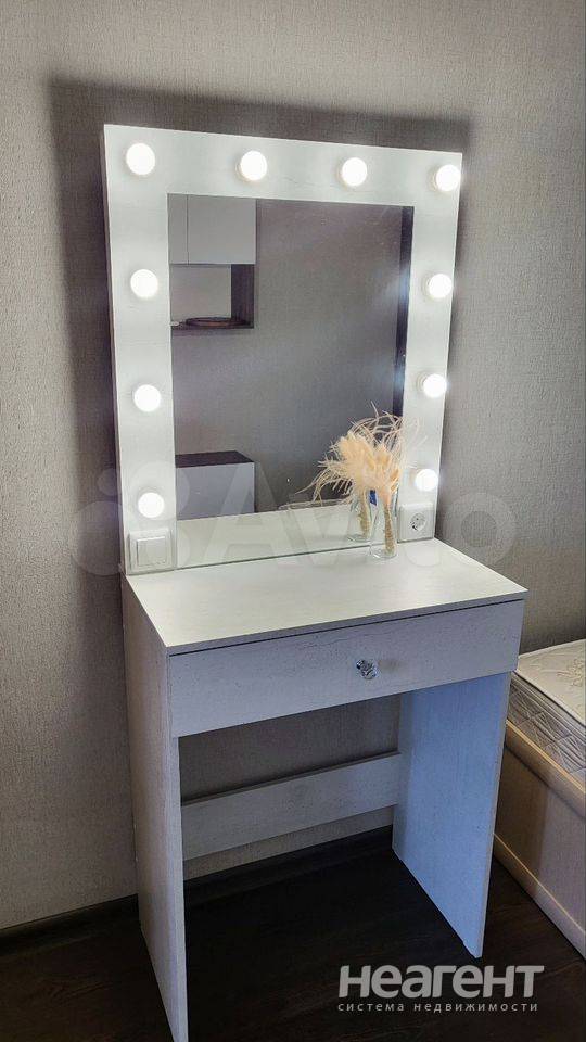 Квартира в ЖК «Жемчужина», 32 кв. м с новым ремонтом. 5 этаж, 10 мин. до трамвая пешком. Кухня-гостиная: Современный кухонный гарнитур, обеденный стол, плита, холодильник, телевизор, микроволновка ...