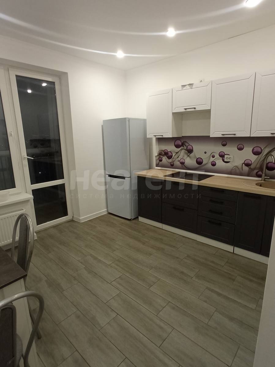 Квартира в ЖК «Жемчужина», 32 кв. м с новым ремонтом. 5 этаж, 10 мин. до трамвая пешком. Кухня-гостиная: Современный кухонный гарнитур, обеденный стол, плита, холодильник, телевизор, микроволновка ...