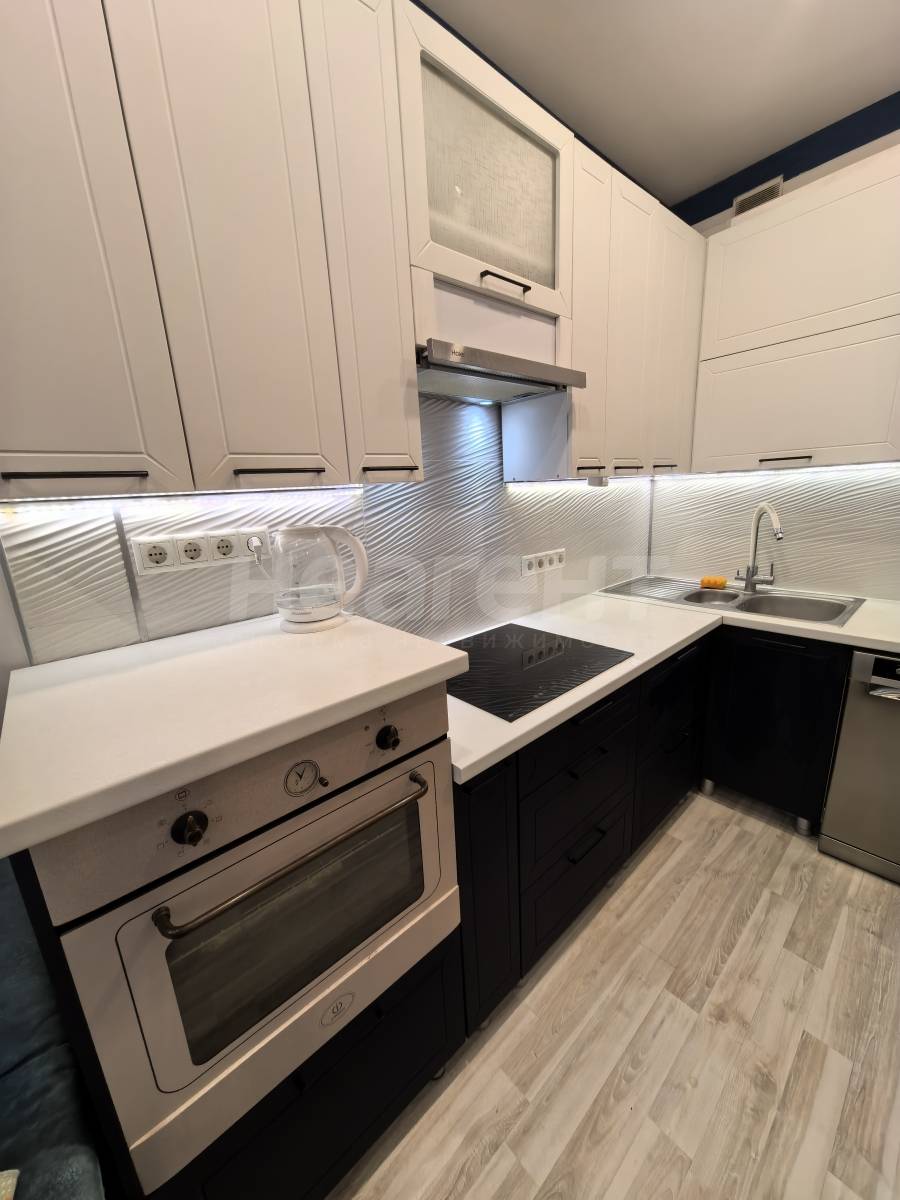 Ранее квартира не сдавалась. Ремонт делался под себя - фильтры на входящую воду, на питьевую на кухне, теплый пол в санузлах, шторы, система сушки белья в туалете, зеркала с подсветкой.