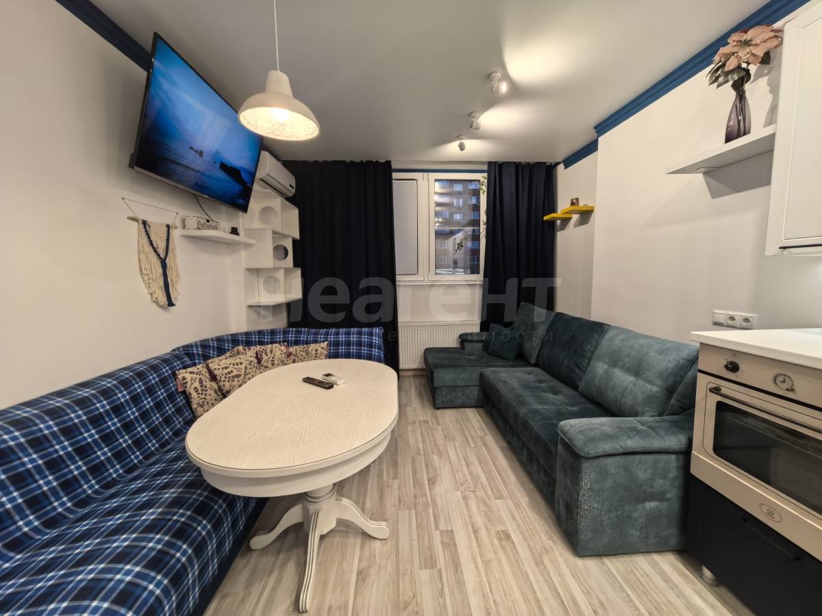 Очень просторная кухня (объединена с балконом): большой телевизор 50 «на андроиде, большой диван (раскладывается в двуспальное место), красивый стол (раздвигается).