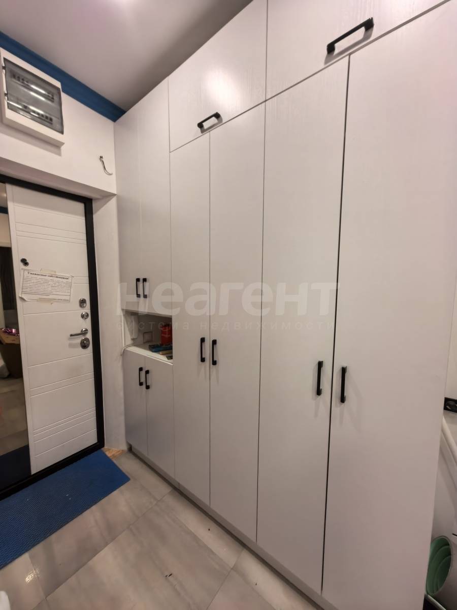 В прихожей ряд шкафов для одежды как верхней, так и большой шкаф для прочего.