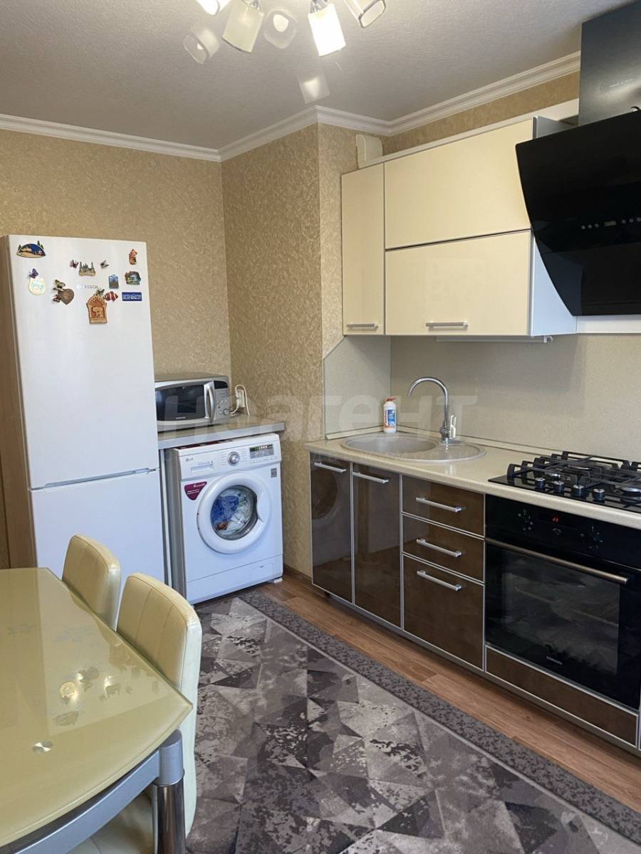 Сдаётся уютная двухкомнатная квартира на длительный срок.Кухня просторная, оснащена всем необходимым: посудой, газовой плитой, холодильником и стиральной машиной.