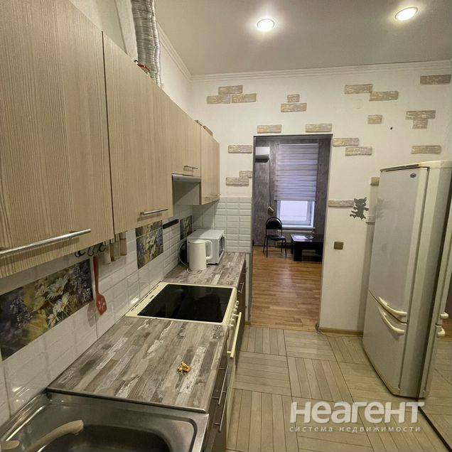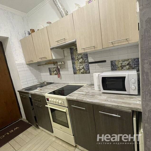 Квартира в ЖК «Жемчужина», 32 кв. м с новым ремонтом. 5 этаж, 10 мин. до трамвая пешком. Кухня-гостиная: Современный кухонный гарнитур, обеденный стол, плита, холодильник, телевизор, микроволновка ...