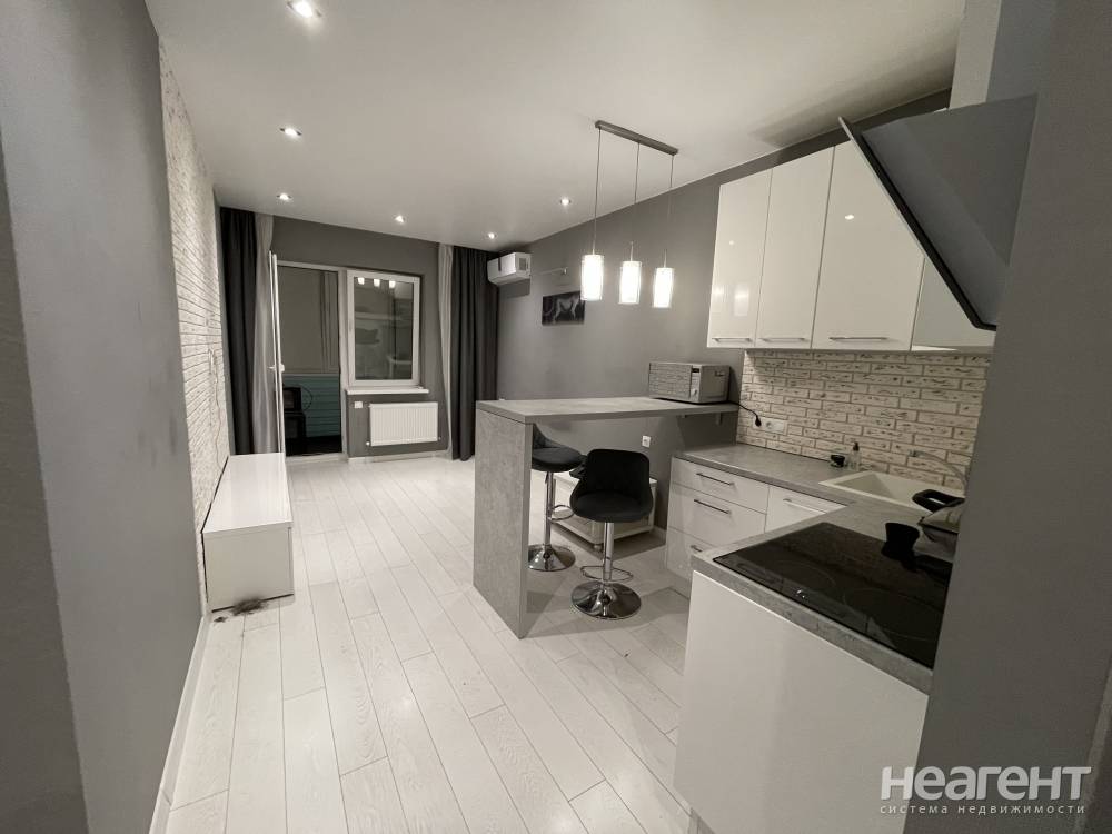 Квартира с современным ремонтом в ЖК Победный. С кухонной мебелью, с встроенной техникой, холодильник, телевизор, кондиционер, стиральная машина, мягкая мебель, стол, стулья. Благоустроенная ...