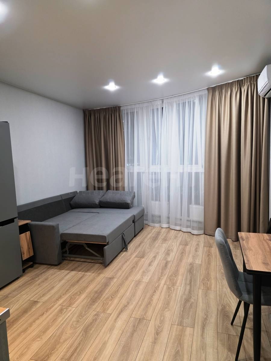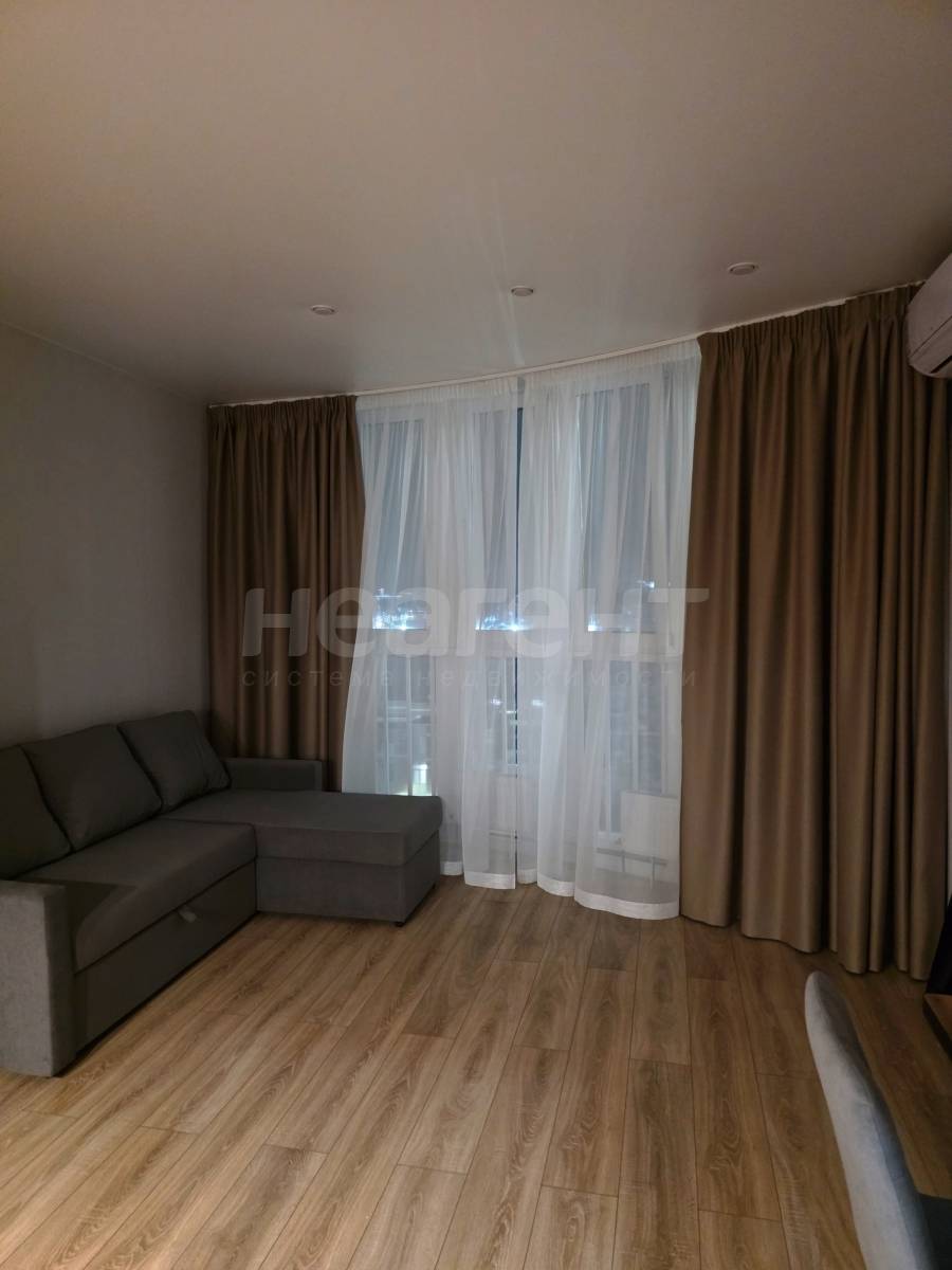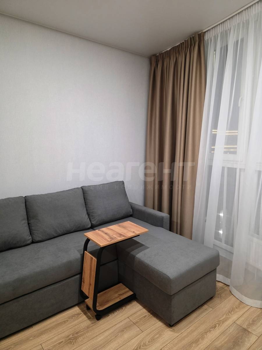Сдам студию площадью 26 кв. м на 10 этаже 21 этажного монолитно-кирпичного дома. Сдам абсолютно новую, уютную студию с мебелью и ремонтом. Никто ранее не жил.10 этаж, панорамное окно, красивые дорогие шторы, угловой диван (спальное место 145 х200).