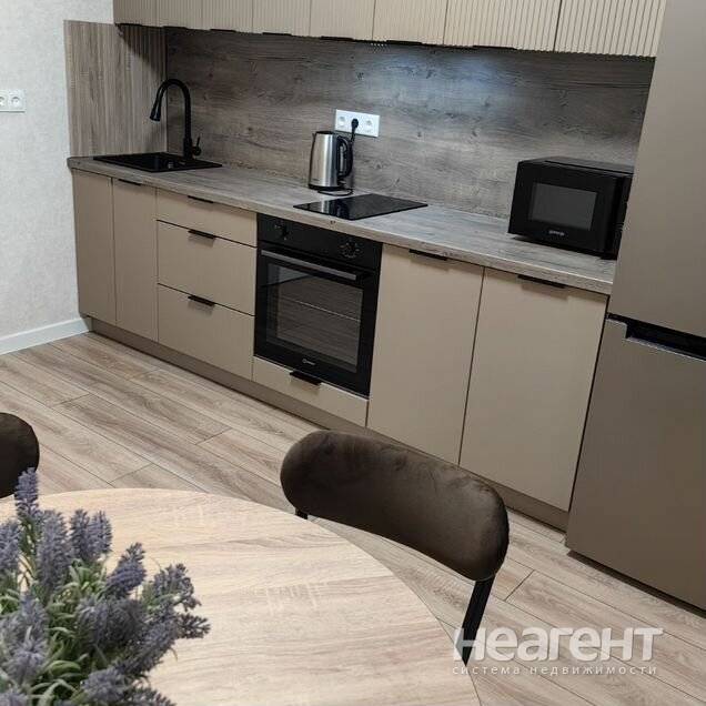Сдаю в аренду на длительный срок 1-комнатную квартиру площадью 35 кв. м на 5 этаже 5 этажного кирпичного дома. Просторная кухня, 11 квадратов, оборудована всем необходимым: современная встроенная мебель, холодильник, микроволновая печь, электрический чайник, электрическая плита, духовой шкаф. Стол и стулья. Для хранения вещей - большой шкаф и вместительный комод. Спальня 14 квадратов. Большая двуспальная кровать. В комнате достаточно места, чтобы расположить детскую кроватку, туалетный столик или дополнительный шкаф. Совмещенный санузел оснащен сантехникой, стиральной машиной и зеркалом с подсветкой. Балкон застеклен, вид на спокойный двор, также дает возможность дополнительного хранения. В ЖК большое количество детских площадок, полная инфраструктура, пункты выдачи, магазины, рынок, остановка общественного транспорта, аптека, школа, всё в шаговой доступности. Залог 26000 руб. Для арендаторов без детей и без животных.
