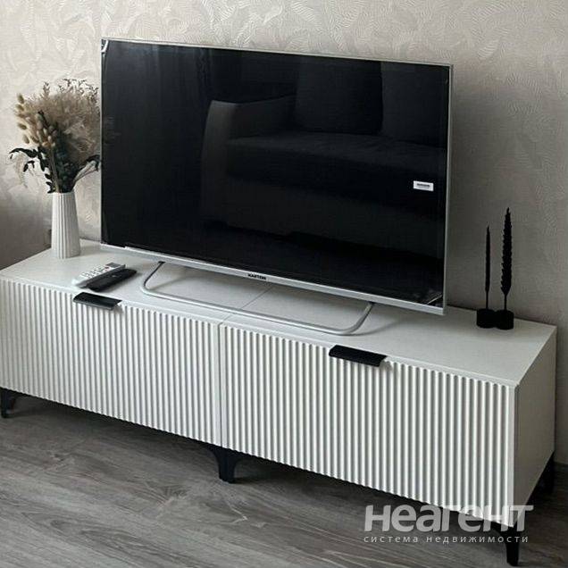 Квартира в ЖК «Жемчужина», 32 кв. м с новым ремонтом. 5 этаж, 10 мин. до трамвая пешком. Кухня-гостиная: Современный кухонный гарнитур, обеденный стол, плита, холодильник, телевизор, микроволновка ...