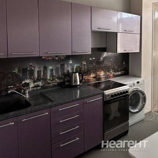 Квартира в ЖК «Жемчужина», 32 кв. м с новым ремонтом. 5 этаж, 10 мин. до трамвая пешком. Кухня-гостиная: Современный кухонный гарнитур, обеденный стол, плита, холодильник, телевизор, микроволновка ...