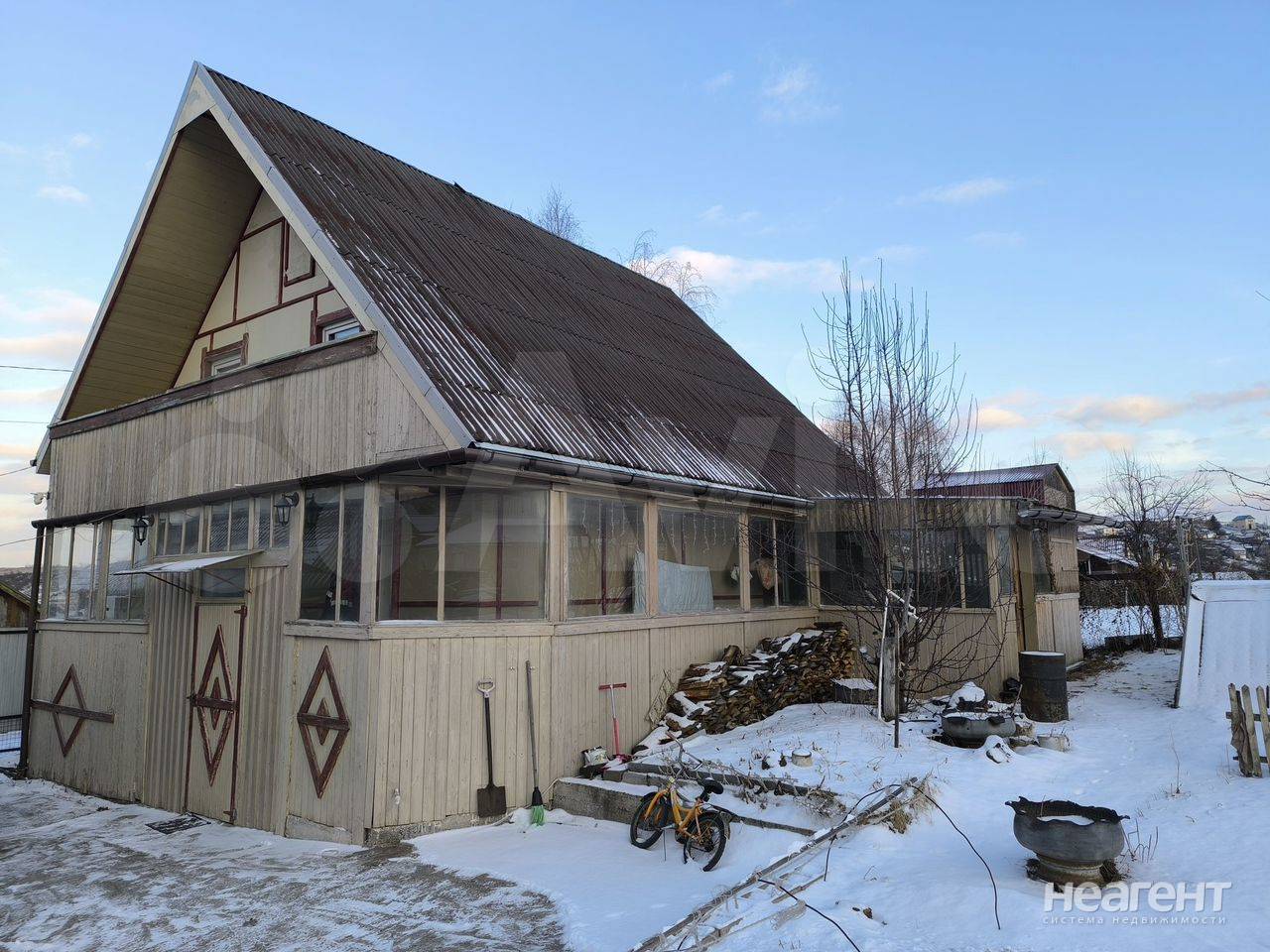 Продаю дом площадью 112 кв. м на участке 7,1 сотка. Два этажа, брусовой 180 х150, обшит термитом и гладким шифером, на территории CHT. Круглогодичное проживание, проезд хороший круглый год. Второй этаж дома - мансардный, на нем расположены 3 спальных комнаты. На 1 этаже расположена комната -гостиная, кухня, холл и совмещенный санузел с душевой кабиной. На втором этаже балкон во всю ширину дома, с видом на город. Скважина, большая застеклённая беседка для отдыха, пристроена к дому, игровая детская зона (горка, качели), септик, котёл под дрова и уголь -самодельный, экономичный (3.5-4 тонны угля на зимний сезон), проводной интернет, городская прописка. Участок 7,1 сот, с насаждениями (вишня, яблони, слива, ирга, черная смородина, черноплодная рябина, садовая жимолость, малина, виктория). На территории участка имеется небольшой блочный дом 30 кв. м с печкой, после косметического ремонта можно также проживать. К нему пристроен большой навес с воротами под грузовик, имеется баня (парилка и мойка отдельно), а также сарай под большим навесом, все строения и земля узаконены, в собственности.