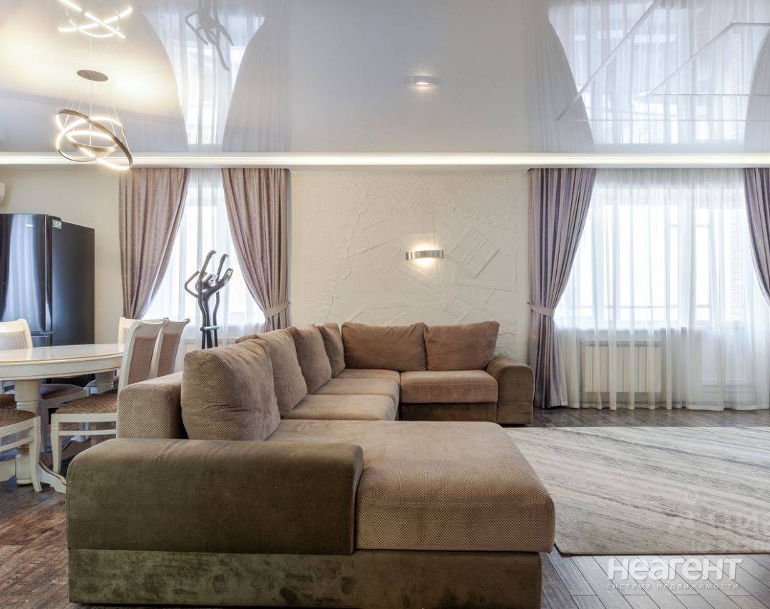 Продаю 4-х комнатную квартиру площадью 145,2 кв. м на 5 этаже 6 этажного панельного дома. Район с развитой инфраструктурой: детская и взрослая поликлиники, детский сад во дворе, школа, аптека, почта, остановка общественного транспорта в шаговой доступности. Удобная транспортная развязка. Во дворе имеется детская площадка. В квартире остается вся мебель и техника. В квартире очень удобная планировка. Можно сразу заезжать и жить. Первый этаж. Попадая в квартиру, вы оказываетесь в просторной прихожей, где разместился вместительный шкаф. Тут же расположен вход в санузел на первом этаже. Большая кухня-гостиная с очень удобной и эргономичной планировкой. Максимум свободного пространства: мебель подобрана соответственно размерам комнаты и не препятствовала перемещению домочадцев и их гостей. Окружающий интерьер комнаты воспринимается как единое целое: все элементы сочетаются между собой по цвету, форме и стилю. Продуманное расположение электроприборов. Ремонт выполнен с использованием высококачественных материалов и дорогой мебели. Кухня оборудована всей необходимой техникой. В гостиной установлен кондиционер. В квартире также имеется две просторные лоджии с панорамным видом на город. Второй этаж. Три спальни: две детские и мастер-спальня со своим санузлом и гардеробной. Важной особенностью квартиры является отличная шумоизоляция: находясь на втором этаже, вы не услышите никаких шумов с первого. Все комнаты светлые и уютные, тёплые тона отделки и мебели создают гармоничное пространство. В квартире хорошее освещение, установлены светильники разных типов, в том числе и встроенные.
