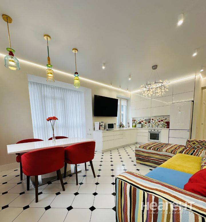 Продаю 4-х комнатную квартиру площадью 94 кв. м на 9 этаже 9 этажного кирпичного дома. Красивая большая квартира с яркими деталями от собственника. Просторная яркая гостиная, с праздничным столом и большими окнами, из которых открывается великолепный вид. Современная кухня с большой рабочей поверхностью оснащена всей необходимой техникой (варочная панель, духовой шкаф, посудомоечная машина, холодильник, микроволновка, кофемашина, холодильник), раковина расположена напротив окна. Три отдельные комнаты, могут использоваться по усмотрению новых хозяев. Квартира расположена в престижном жилом комплексе закрытого типа, территория огорожена по периметру, охрана 24/7, въезд через КПП, действует пропускная система. На территории в шаговой доступности расположены кофейня, ателье, супермаркет, стоматология, пункты выдачи ozon и Wildberries, несколько частных детских садов, салон красоты, многочисленные прогулочные зоны, детские и спортивные площадки. Подземный паркинг со спуском через лифт есть в этом доме, можно отдельно арендовать, либо купить места.