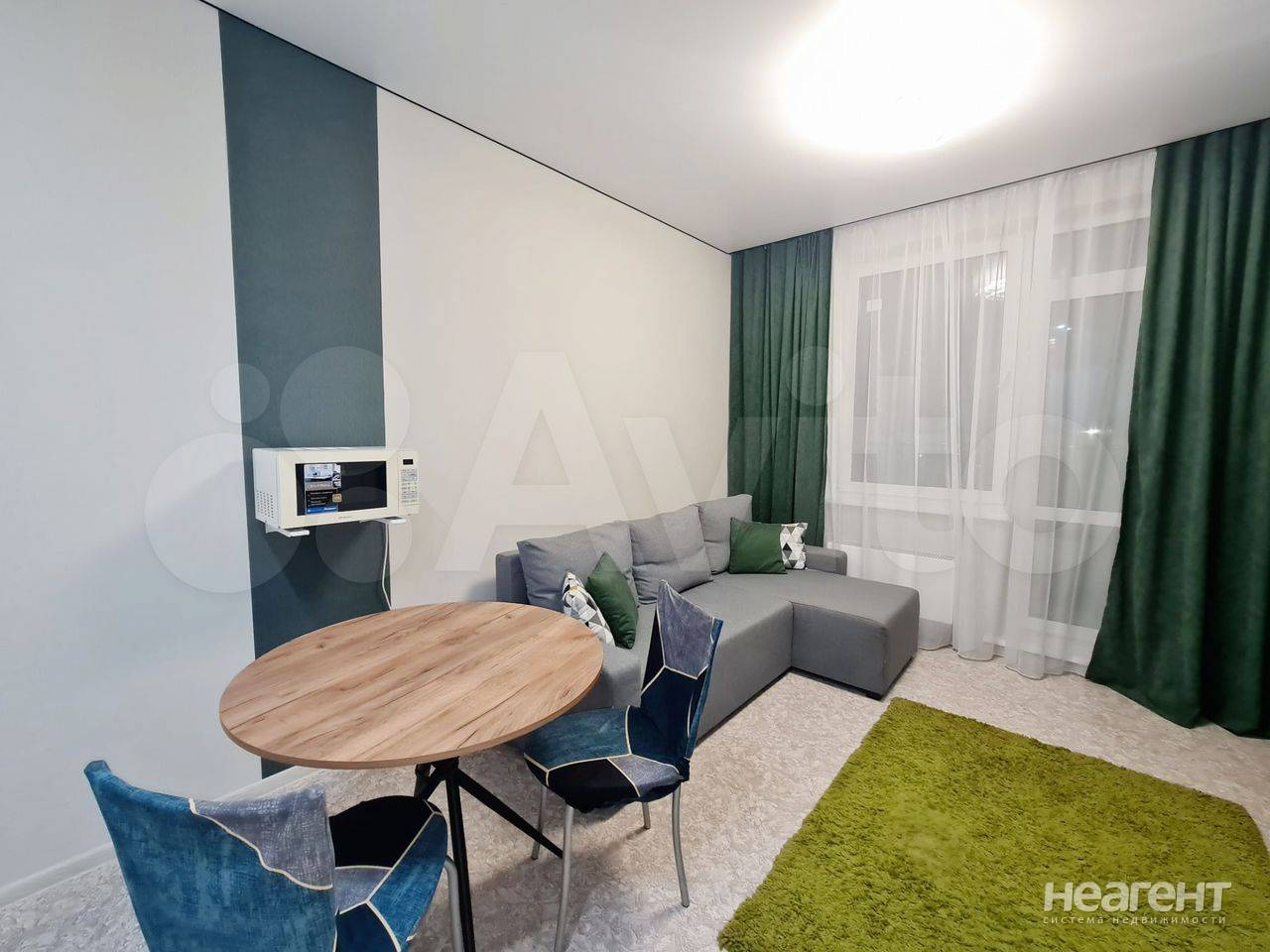 Все для комфортного проживания есть. Кухня укомплектована. Комната - комфортный диван, журнальный стол, стенка с телевизором с Алисой, рабочий стол с полками, стул, напольная лампа, платяной ...