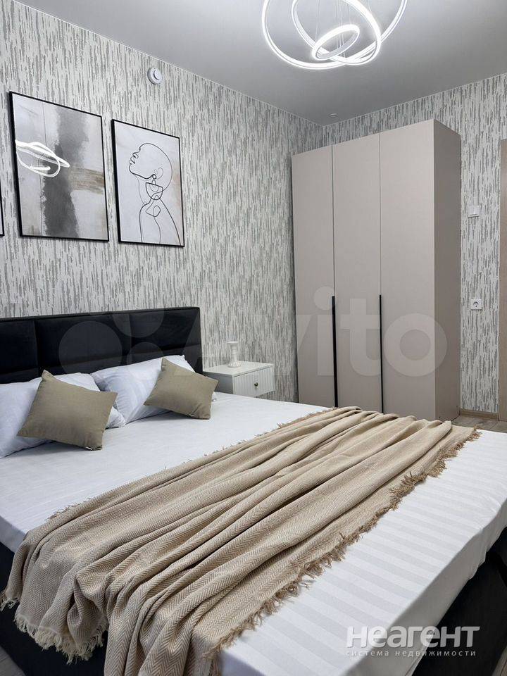 Квартира со свежим ремонтом в новом доме. Имеется вся необходимая для проживания мебель и техника. В коридоре: прихожая с вешалкой и зеркалом, шкаф, коврик; в спальне: двухспальная кровать ...