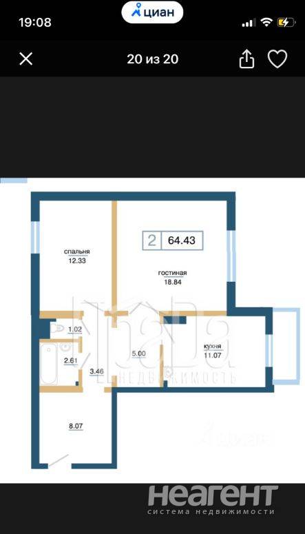 Сдается 2-х комнатная квартира, 55,2 м²
