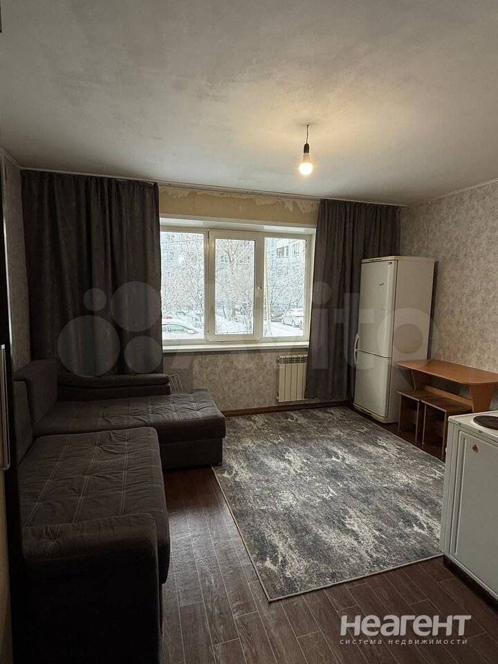 Сдаю в аренду комнату площадью 27 кв. м на 1 этаже 9 этажного дома. Сдам чистую опрятную студию, имеется холодильник, микроволновка, плита, кухонный гарнитур, диван, шкаф, стол, стулья. Залог.