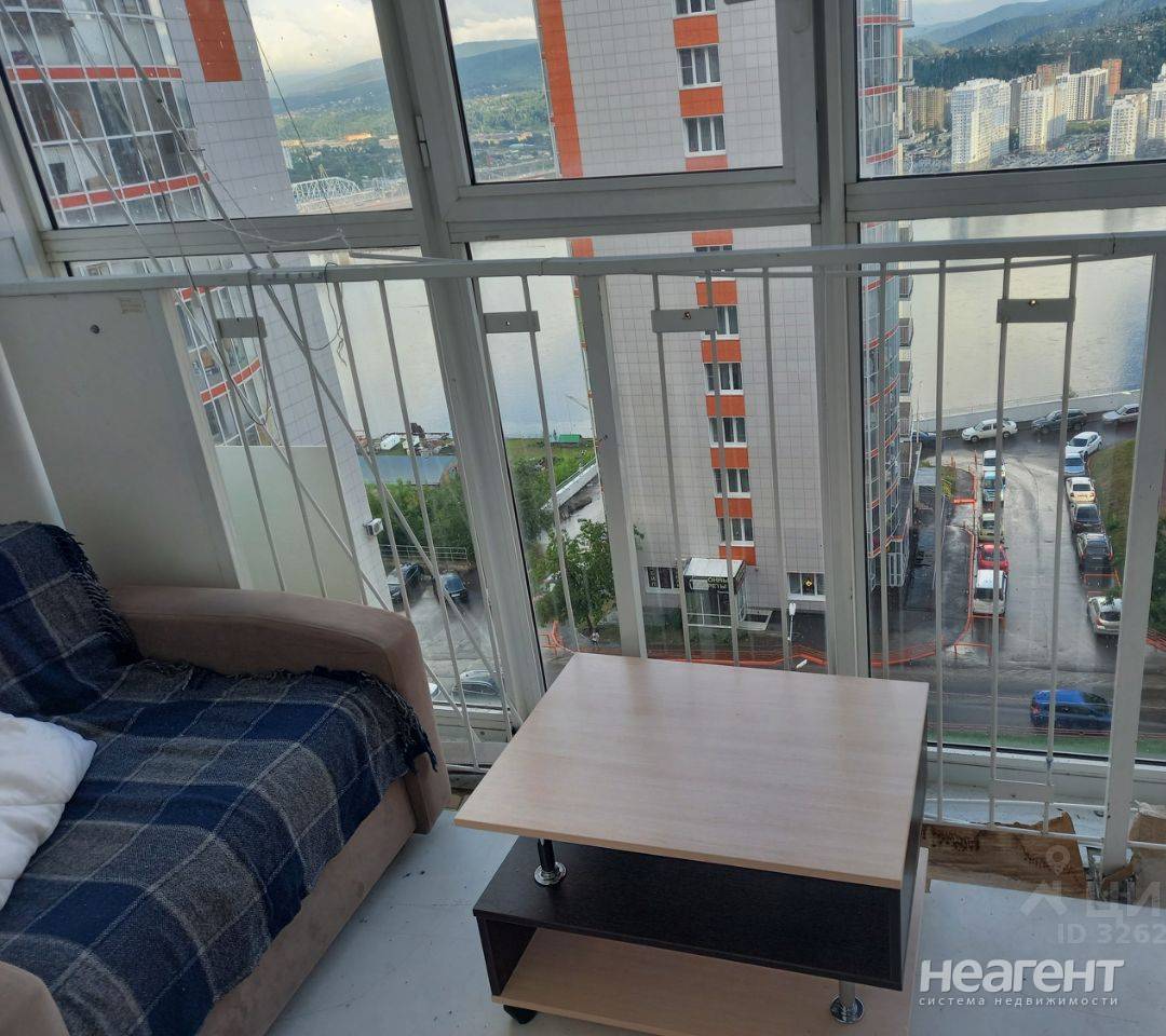 Сдаю в аренду 1-комнатную квартиру площадью 25 кв. м на 9 этаже 17 этажного кирпичного дома. Студия с большой лоджией с видом на Енисей и горы. Кухонная зона, холодильник, 4-х комфорочная электроплита с духовкой, новая стиральная машина Weissgauff с паром на 10 кг, новый двуспальный комфортый диван, плательный шкаф, обеденный и журнальный столы, табуретки, диван-кровать на лоджии. Ванная в кафеле, сантехника вся новая. Оплата ежемесячно + счетчики + кабельный скоростной интернет. Необходим залог при заселении. Сдается платежеспособным арендаторам (предпочтительно аккуратной девушке или семейной паре) без детей, без животных, некурящим. Показ с 07.02.2026 с 17 ч по договоренности. Заселение с 08.02.2026. Договор. Студия сдается без комиссии, напрямую от собственника. Агентствам просьба не беспокоить. Залог.