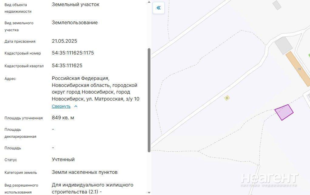 Продаю участок площадью 8 соток. Кадастровый номер: 54:35:111625:1175. Данные с Нспд: Земли населенных пунктов для индивидуального жилищного строительства. Зоны с особым использованием территории (Зоуит) отсутствуют. Других ограничений нет. Гпзу заказали. Уведомление о планируемом строительстве подали. К сделке готовы на 100%. Физические параметры: Участок правильной, прямоугольной формы; Практически ровный, с небольшим перепадом уровня. Коммуникации: Электричество столбы по улице. Газ по границе участков. Вода соседние дома Ижс автономная скважина. Канализация соседние дома Ижс автономный септик. Но. в 100 метрах расположен дом пятиэтажный Мкд, с централизованным водоснабжением и водоотведением (канализация). Инфраструктура: в пешей доступности. Школа 1.5 км. Детский сад 600 м. Продуктовый магазин 500 м. Автобусная остановка 500 м. Почти до участка полностью асфальтированная дорога. Проживание Круглогодичное. До пл. Калинина 19 км. Реальному покупателю торг.