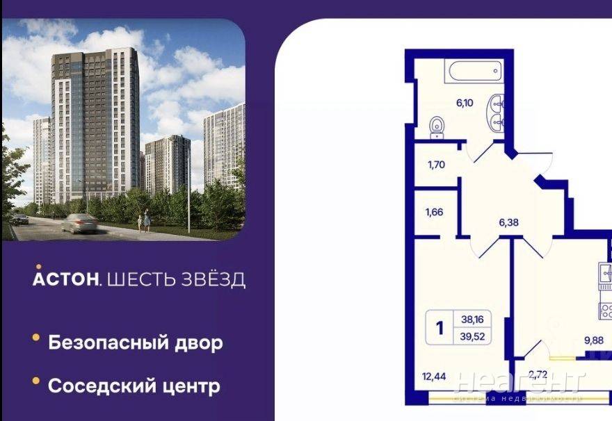 Продаю 1-комнатную квартиру площадью 39,5 кв. м на 9 этаже 26 этажного дома. Собственник. Цена дешевле, чем на аналогичную квартиру сейчас у застройщика. 1-комн. квартира с предчистовой отделкой в ЖК «Астон Шесть Звезд» на 9 этаже. Общая площадь: 39,5 кв. м, жилая: 12,44 кв. м, площадь просторной кухни-столовой 9,9 кв. м. в квартире одна лоджия, один совмещенный санузел, гардеробная. Высота потолков 2.7 м. Окончание строительства 4 квартал 2026 года. Переуступка. При покупке квартиры мат. капитал не использовали.