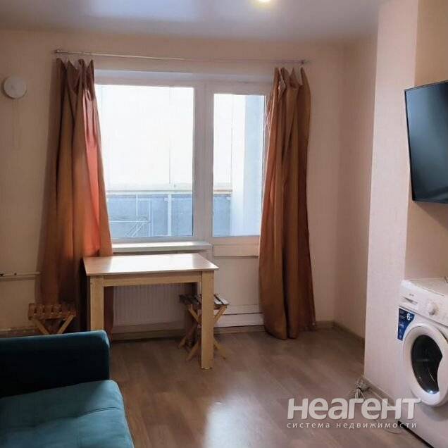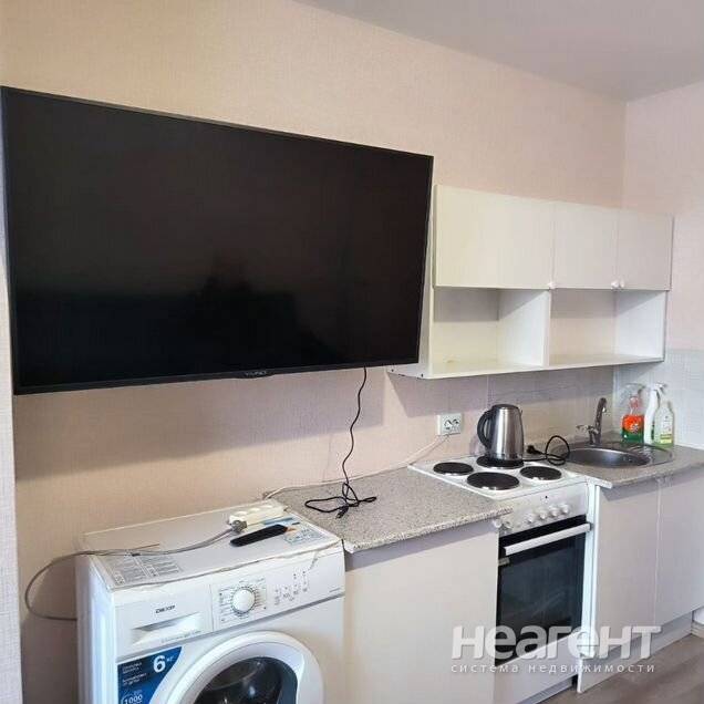 Студия сдается со всем необходимым для проживания: диван, пенал для вещей, тумбочка, кухонные шкафы, стол, холодильник, стиральная машина, плитка, чайник, немного посуды. Рядом 5 ка, ярче ...
