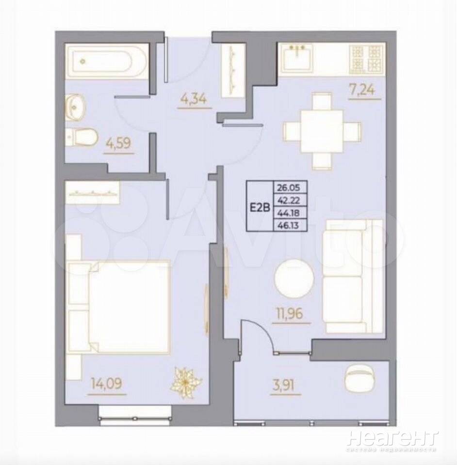 Квартира в живописном районе ЖК Легенда Ростова по адресу Россия. Ростов-на-Дону, проспект Михаила Нагибина, 40. Б. Общая площадь квартиры составляет 34,56 кв. м, что включает в себя просторную ...