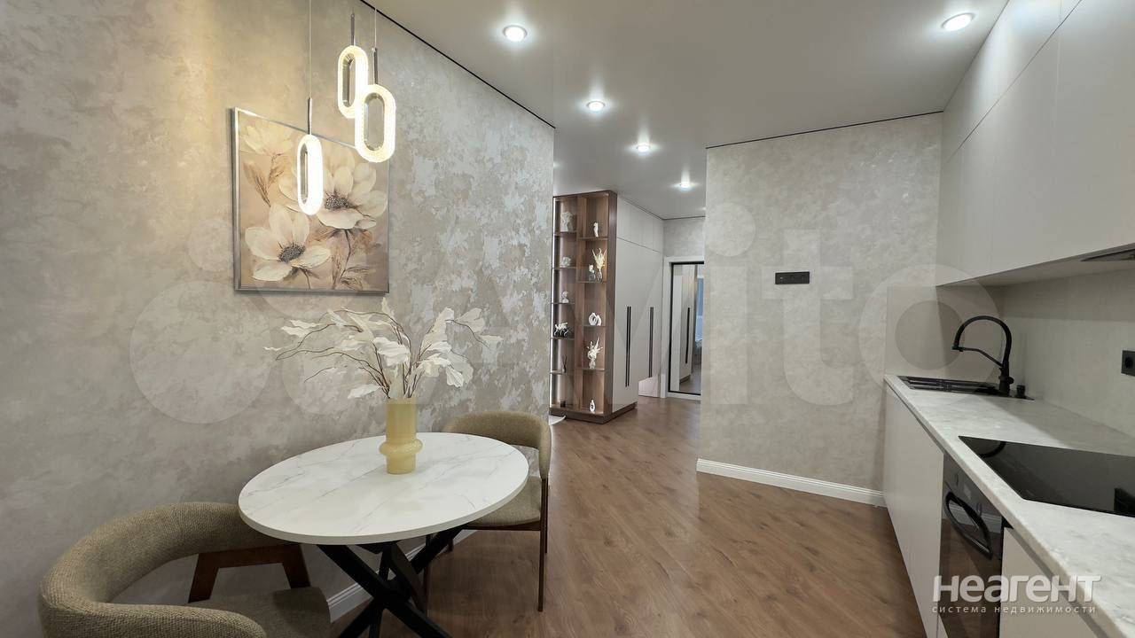 Продаю 2-х комнатную квартиру площадью 43 кв. м на 15 этаже 24 этажного монолитно-кирпичного дома. Квартира полностью с новым дизайнерским ремонтом на фото все видно: светлая кухня с встроенной техникой, уютная зона гостиной с диваном, продуманная система хранения, отдельная спальня с мягкой кроватью и подвесными тумбами, современный санузел с большим зеркалом. Красивое освещение, теплые оттенки, качественные материалы, ничего делать не нужно заезжай и живи. Высокий этаж, аккуратный дом, документы чистые, без обременений, быстрый выход на сделку. Вся мебель и бытовая техника остаётся. Отличный вариант для жизни или сдачи в аренду квартира выглядит дорого и аккуратно.